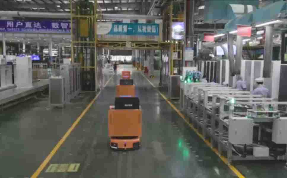 为车载冰箱物流配送打造的智能解决方案,,,,包含产中物流通过潜伏举升AMR搬运至线边,,产后成品物流智能仓储,,流程包含产中物流智能齐套入库,,,,线边安灯叫料AMR智能配送至线边,,,成品入库、、出库,,,通过无人堆高车机器人,,,,智能仓储管理替代人工作业管理,,,,实现更高存储、、更高效率、、、更具柔性化的解决方案。。。。