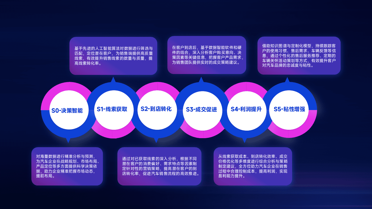 通过拓宽潜在客户来源、、、优化线索分配并提高到店转化率,,以增强销售效率。。同时,,,利用线索数据不断优化分析模型,,,,有效提升转化率,,扩大营销影响力。。。。